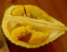 Ce fruit, lui aussi appelé durian, est récolté en Asie du Sud-Est mais également dans les îles du Pacifique et en Amérique du Sud. On en trouve, par exemple, sur les marchés de Guyane fin mars, début avril. Il se présente comme une grosse baie ovoïde (parfois plus de 40 cm de longueur), pesant jusqu'à 5 kg, avec une carapace de grosses épines et poussant en haut de grands arbres. Il est connu pour son goût particulier et sa forte odeur (à tel point que de nombreux pays d'Asie du Sud-Est l'interdisent dans les lieux publics et dans les transports en commun).