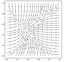 De plus on peut voir par calcul que donc l’équilibre x* est convergent, on a donc une stratégie évolutive continuellement stable (CSS).