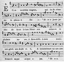 - (en) Cet article est partiellement ou en totalité issu de l’article de Wikipédia en anglais intitulé « Ecce sacerdos magnus » (voir la liste des auteurs).