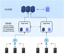 L'edge computing permet aussi d'éviter la transmission de données nombreuses et peu pertinentes vers les centres de données ou le cloud, apportant fluidité et rapidité de réaction[3]. L'edge computing couvre un large éventail de techniques, notamment celle des réseaux de capteurs sans fil, l'acquisition de données transférables et itinérantes, l'analyse des signatures sur portables, le traitement coopératif en peer-to-peer (fog computing, dew computing[4], multi-access edge computing[5],[6], stockage de données réparties, services de cloud à distance, réalité améliorée, et plus encore[7].