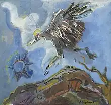 Son style évolue donc vers des rythmes tumultueux, mystérieux et même violents. Comme plasticien, il exprime ainsi les turbulences du monde dans une sorte d’expressionnisme, très personnel, souvent abstrait, aussi bien dans ses peintures, ses gouaches, ses tapisseries ou ses mosaïques proches de l’art brut[33].