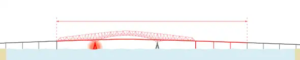La pile percutée par le navire est l'appui en rive droite du tablier suspendu qui, privé de ce support, s'affaisse et se brise en plusieurs endroits. La section du tablier en rive gauche s'effondre à son tour. Des parties de la structure métallique restent visibles au-dessus du niveau de l'eau et l'une d'elles repose sur la proue du navire.
