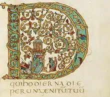 - l'art des manuscrits s'enrichit considérablement dans les scriptoria, avec la minuscule caroline, les enluminures ;