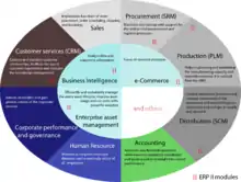 À partir de 1990 environ, la logique introduite par le MRP s'étend progressivement à l'ensemble des fonctions de l'entreprise, pour donner l'« ERP » (E comme entreprise). Cette transition est facilitée par :