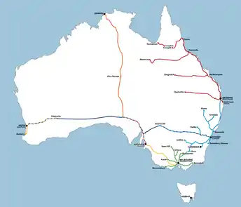 Le transport ferroviaire australien compte un réseau de lignes ferroviaires long de 33 819 km (dont 2 540 km électrifiés) en 1999.