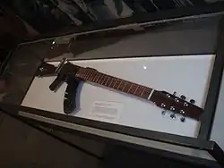 La première escopetarra a été réalisée en 2003 à partir d'un fusil Winchester et la guitare électrique Stratocaster.