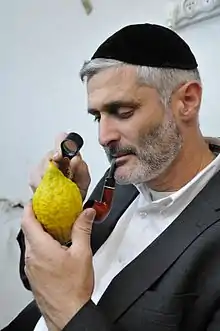 L'etrog est un fruit à croissance lente. L'arbre donne ses fruits vers trois ans[3]. Ceux-ci sont oblongs, et peuvent atteindre 15 cm de long. La pelure est épaisse, rénitente[4], odoriférante et couverte de protubérances ; la pulpe est blanche et subacide. Lorsqu'on l'achète avant Soukkot, il est typiquement vert, et vire au jaune profond au cours de la semaine de la fête. En France il est principalement cultivé en Corse[5].
