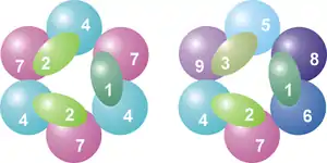 Le cœur du complexe a une structure d'anneau composé de six des protéines qui appartiennent toutes à la même classe de ribonucléases, les RNases PH[8]. Chez les Archaea, on trouve deux protéines RNases PH (appelées Rrp41 et Rrp42) présentes trois fois en alternance dans le cœur. Chez les Eucaryotes, on en trouve six différentes pour former la structure en anneau[9],[10]. Sur ces six protéines des Eucaryotes, trois ressemblent à la protéine Rrp41 et les trois autres sont plus proches de la protéine Rrp42 des Archaea[11].