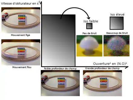 Sur les appareils évolués (reflex, compacts ou autres), le photographe peut choisir de régler lui-même l’ouverture du diaphragme ou la vitesse d'obturation, le boîtier se chargeant de déterminer l’autre paramètre afin de conserver l’exposition visée. Ce sont les modes priorité ouverture (ou diaphragme) et priorité vitesse.