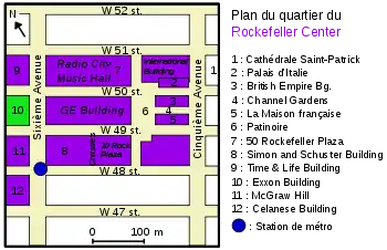 Bien que les trois bâtiments portent le nom d'entreprises américaines, seul le Mac Graw Hill est actuellement occupé par l'entreprise. La compagnie ExxonMobil a, elle, déplacé ses bureaux à Brooklyn, et ne possède maintenant plus aucun bâtiment au Rockefeller Center.