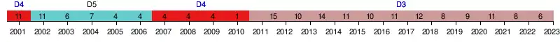 | 2005 | 4e | 62 | 30 | 19 | 5 | 6 | 73 | 36 | +37 | ||