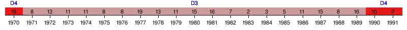 | 1972 | 3e Zone 6 | 13e | 44 | 36 | 12 | 8 | 16 | 40 | 39 | +1 | |