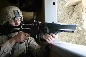 Le propulseur a une portée de 100 m, pèse 2,3 kg et les chargeurs ont une capacité de 15 coups. Les munitions utilisée sont d'un calibre de 18 mm[1].