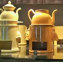 La faïence du pays d'Apt s'est développée à partir du XVIIIe siècle dans le pays d'Apt. Sa production est liée à l'abondance de ses argiles et terres d'ocre. Leur utilisation, dès l'Antiquité, permit de développer une production de tuiles, briques et carreaux qui perdure encore de nos jours. La réputation de la faïence du pays d'Apt est due à la technique des terres de couleur mêlées ou jaspées qui composent un dessin dans toute l'épaisseur de la pâte. À cela s'ajoute un style baroque, où les aiguières, écuelles et pots à tabac sont rehaussés de décors monochromes de feuillages, de fruits et de petites figurines d’inspiration Louis XVI.