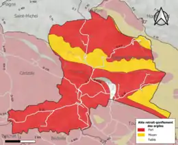 Les mouvements de terrains susceptibles de se produire sur la commune sont soit des chutes de blocs, soit des glissements de terrains, soit des effondrements liés à des cavités souterraines, soit des mouvements liés au retrait-gonflement des argiles. Près de 50 % de la superficie du département est concernée par l'aléa retrait-gonflement des argiles, dont la commune de Fabas[39]. L'inventaire national des cavités souterraines permet par ailleurs de localiser celles situées sur la commune[40].