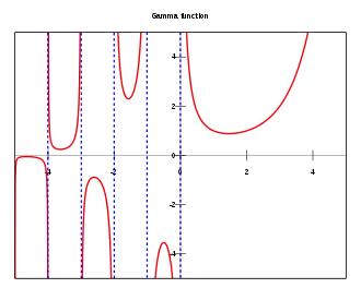 La fonction factorielle admet pour prolongement, à l'ensemble des nombres complexes autres que les entiers strictement négatifs, l'application où désigne la fonction gamma d'Euler. En effet, pour tout entier naturel n, on a :