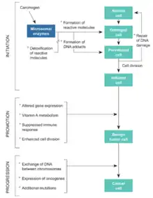 • Les anomalies chromosomiques dans le foie de souris irradiées à 20 mGy/jour augmentent linéairement avec le temps ; et augmentent quatre fois plus vite quand l'irradiation est à 200 mGy/jour[31] ce qui montre en passant que l'effet d'une irradiation sur les chromosomes n'est pas linéaire.