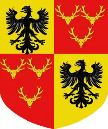Les armes des Soderini sont écartelées, au premier et dernier de l'Empire, savoir une Aigle de sable en champ d'or, au second et troisième de gueules à trois têtes ou rencontres de Cerf d'or armées de leurs bois.
