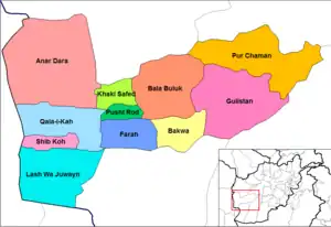 Il y a aussi beaucoup de Pachtounes car, depuis 1747, le gouvernement afghan a essayé de coloniser les régions persanes telles que Farah pour y assurer sa domination[réf. nécessaire].
