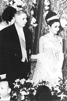 Le a lieu le couronnement du chah, pour son 48e anniversaire, au palais du Golestan, à Téhéran. C'est à l'occasion de cette cérémonie, que la reine Farah est sacrée par le souverain qui lui dépose lui-même la couronne sur sa tête. Il s'agit d'une année importante, car c'est la première fois dans l'histoire de l'Iran qu'une femme reçoit vocation à la régence du pays en cas de vacance du trône. Avec le couronnement Farah Pahlavi se voit attribuer la position de Nayeb-al-Saltaneh (vice-roi). Cela signifiait qu'elle pouvait prendre la place du Shah en son absence et agir à sa place. La Shahbanou reçoit pour la cérémonie une nouvelle couronne spécialement créée pour l'occasion par la maison de joaillerie parisienne Van Cleef & Arpels, comportant 1150 pierres : perles grises et blanches, diamants, rubis et émeraudes gravées, dont une pesant plus de 150 carats[33]. Après la cérémonie du couronnement, Mohammad Reza Shah Pahlavi expliqua :