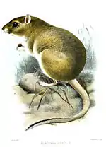 | Meriones libycus | Mérione de Libye, mérione libyen ou mérione à queue rouge | |||