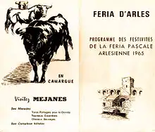 Plusieurs rencontres furent nécessaires pour éditer le premier programme qui répertoriait les festivités. Il sortit des presses de l'imprimerie Ricard et il était « illustré au recto d'un dessin à la plume représentant les gradins vus de la piste de l'Amphithéâtre et au verso de trois toros utilisés comme support publicitaire pour vanter les charmes de Méjanes ». En 1966 le format fut modifié et la couverture fut imprimée en quadrichromie. L'illustration de la une fut modifiée l'année suivante, par contre son illustration resta identique pendant de longues années[7].