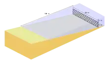 Schéma représentant un filet anti-requins au large d'une plage.