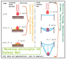 Un filet de sécurité donne aux objets qui tombent beaucoup plus de temps pour se reposer que de toucher directement un sol dur. En termes physiques, cela signifie plus de temps pour la décélération et le transfert d'énergie cinétique, ce qui se traduit par un atterrissage plus doux et un risque de dommages beaucoup plus faible.