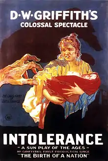 Pendant la Première Guerre mondiale, le réalisateur américain D. W. Griffith a produit Intolérance, un long métrage muet épique de trois heures qui, avec son autre film Naissance d'une nation, est devenu deux des plus grands films de l'ère muette.