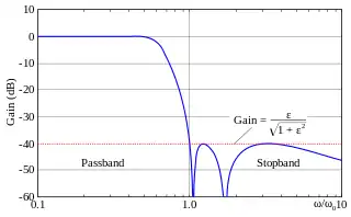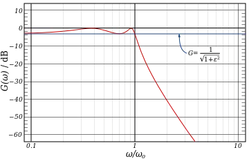 avec est le facteur d'ondulation, la fréquence de coupure et est le ne polynôme de Tchebychev du premier type.
