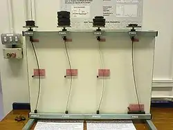 Une expérience de démonstration des modes de flambage d'Euler. Cette expérience montre comment les conditions aux limites (rotulée, encastrée, libre) influent la charge critique d'une poutre fine (dans cette expérience, toutes les poutres sont identiques à leurs conditions aux limites près).