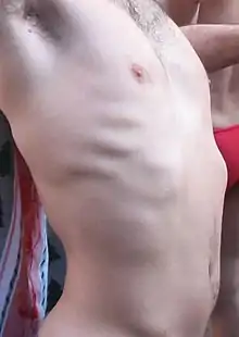 Le flanc droit d'un homme torse nu.