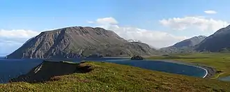 Très montagneuse, elle comporte plusieurs sommets de plus de mille mètres d'altitude recouverts de petits glaciers. La localité de Grenivík se trouve sur son littoral sud-ouest.