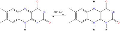 où Flox est la forme oxydée de la flavine, FlredH2 la forme totalement réduite (par l'addition de deux atomes d'hydrogène) et FlH• la forme semiquinone (addition d'un seul atome d'hydrogène).