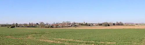 L'occupation des sols de la commune, telle qu'elle ressort de la base de données européenne d’occupation biophysique des sols Corine Land Cover (CLC), est marquée par l'importance des territoires agricoles (95,1 % en 2018), néanmoins en diminution par rapport à 1990 (100 %). La répartition détaillée en 2018 est la suivante : terres arables (95,1 %), zones urbanisées (4,9 %)[14]. L'évolution de l’occupation des sols de la commune et de ses infrastructures peut être observée sur les différentes représentations cartographiques du territoire : la carte de Cassini (XVIIIe siècle), la carte d'état-major (1820-1866) et les cartes ou photos aériennes de l'IGN pour la période actuelle (1950 à aujourd'hui)[Carte 1].