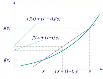 Lorsque l'inégalité est stricte (avec différent de et dans ), on parle de fonction strictement convexe.