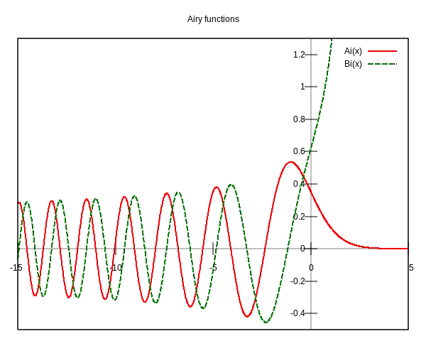 qui a pour solution la fonction d'Airy avec un argument négatif Ai(-y). Un exemple physique serait une particule chargée dans un champ électrique uniforme.