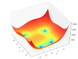 La fonction de Himmelblau est une fonction mathématique multimodale souvent utilisée pour évaluer la performance d'algorithmes d’optimisation.