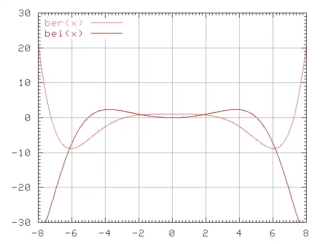 - Tracés sur la droite réelle des fonctions de Kelvin-Bessel d'ordre 0