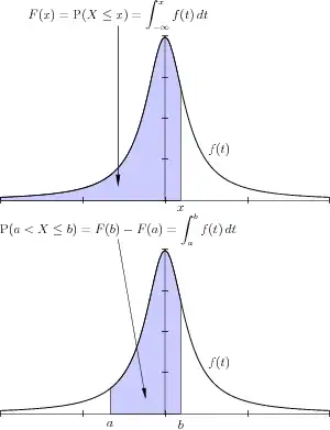 La fonction à intégrer est alors appelée « fonction de densité » ou « densité de probabilité », égale[1] (dans le cas réel) à la dérivée de la fonction de répartition.
