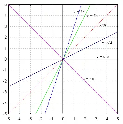 L'élément graphique important est le coefficient directeur (ou pente) de la droite. Il correspond au coefficient de proportionnalité de la fonction linéaire. On retrouve alors un moyen simple de calcul de ce coefficient directeur : si M(x, y) est un point de la droite différent de l'origine, nous avons, comme précédemment y = ax puis, par division par x (non nul)