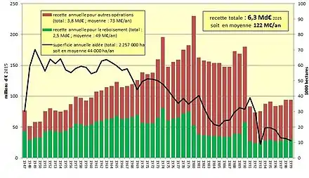 Il a permis de mobiliser 32 milliards de francs (francs 1999 soit 6,3 Mrd € 2015) durant un demi-siècle[1].