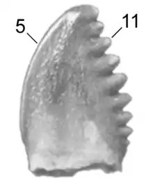 ![]() ![]() Dent de Pectinodon bakkeri. | |||