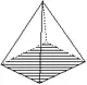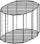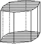 - les « formes ouvertes » dont les faces ne forment pas rigoureusement un volume ; une ou plusieurs faces du volume n'appartenant pas à la forme cristalline. Dans les représentations graphiques, on reconnaît ces formes à l'absence d'une ou plusieurs faces ; absence qui peut être figurée par exemple à l'aide de polygones hachés comme ci-dessous ;