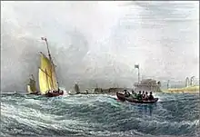 - En 1857, les feux de marée et le mât de signaux sont transportés sur la jetée ouest.