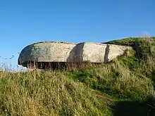 En arrière de chaque pièce est construit, au début de la guerre, un bunker type FK pouvant loger 24 à 27 artilleurs. L'abréviation FK signifie Festungbau-stab der Kanalküste (abris de forteresse pour les troupes protégeant les côtes de la Manche)[2].