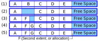 Le fichier F s'est étendu et se retrouve en deux parties.