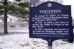 En 1736, François-Marie Bissot de Vincennes partit avec une troupe de 140 soldats français et 266 Amérindiens (Miamis, Iroquois et Arkansas) pour rejoindre le Fort de Chartres. Ils furent attaqués par les Amérindiens Chickasaw, alliés des Anglais. Ils résistèrent mais furent battus sous le nombre important des ennemis. Les Chickasaw capturèrent une vingtaine de soldats français, parmi lesquels l'aumonier et François-Marie. Ils furent emmenés comme prisonniers près de l'actuel lieu de Fulton dans le Tennessee où ils moururent, certains sur les poteaux de torture et la plupart brûlés sur un bûcher. François-Marie Bissot de Vincennes mourut avec ses compagnons le à l'âge de 35 ans.
