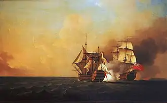 Néanmoins, la situation de Louisbourg est précaire. Mal logés, mal nourris et mal payés, les soldats de Louisbourg se mutinent au mois de décembre 1744. Certains meneurs accusent les fonctionnaires de voler leurs soldes et prévoient de piller la ville avant de passer à l’ennemi[15]. Prévenues par Bigot de la mutinerie, les autorités françaises réagissent vite, trois vaisseaux de ligne sont dépêchés à la forteresse avec des renforts et des vivres[16]. Les navires sont bloqués par la Royal Navy, qui capture même l'un d'eux, le Vigilant, le 30 mai. Une nouvelle escadre est formée à Brest avec sept navires de guerre[17]. Mais il est déjà trop tard : la forteresse de Louisbourg est tombée aux mains des Anglais.