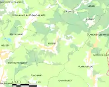 La commune est composée du village principal, lieu-dit le Bourg, et de très nombreux hameaux, principalement le Magny, le Volvet, les Viaux, la Montagne, le Bas, les Potets, le Montaujeux, le Sapoz, le Montvilley ou Montvilliers, le Larmet, la Chevestraye (prononcer « ch'vétré » avec un premier « é » long), le Plainet (qui comme son nom ne l'indique pas, est le plus en altitude, mais correspond à un assez vaste plateau autrefois assez peuplé pour disposer de sa propre école), la Pessa, les Rondey (sans "s" final), la Croix de Pierre, les Jovis, le Conot.